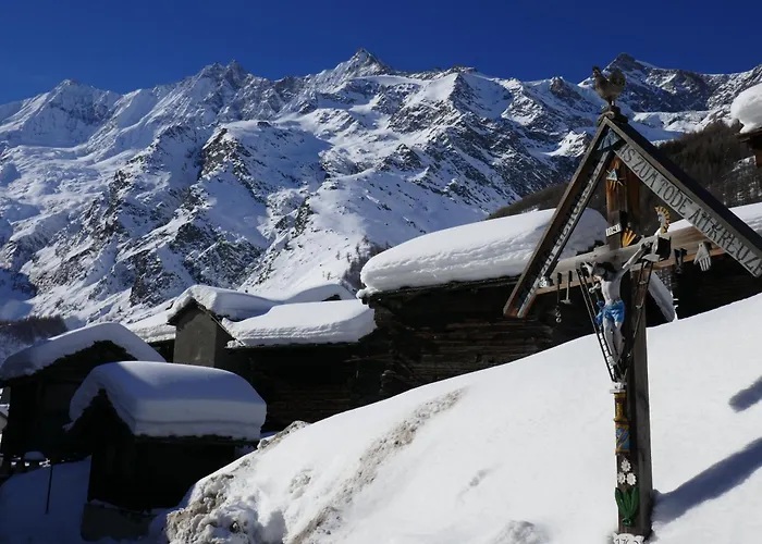 Saas-Fee befindet sich einen 5-minütigen Spaziergang von der Unterkunft entfernt. Die Villa liegt nur ein paar Schritte entfernt vom DrehRestaurant Allalin.